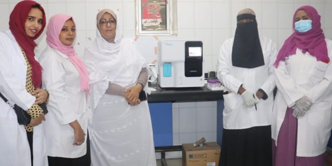 وأما الجهاز الثاني سيتم تشغيله في قسم المعمل الجديد الملحق بالمستشفي والذي سيتم افتتاحه قريبا . واضافت قائلة : الجهاز الحالي يحتوي على فحص الهيمقولبين والدم الابيض والصفائح الدموية بجانب نسبة الكريات البيضاء في الدم بأنواعها الخمسة . ونتقدم بالشكر لشركة ابوقراط على تعاونها المستمر معنا وهي شركة حصرية نتعاقد معها بخصوص الأجهزة الطبية .